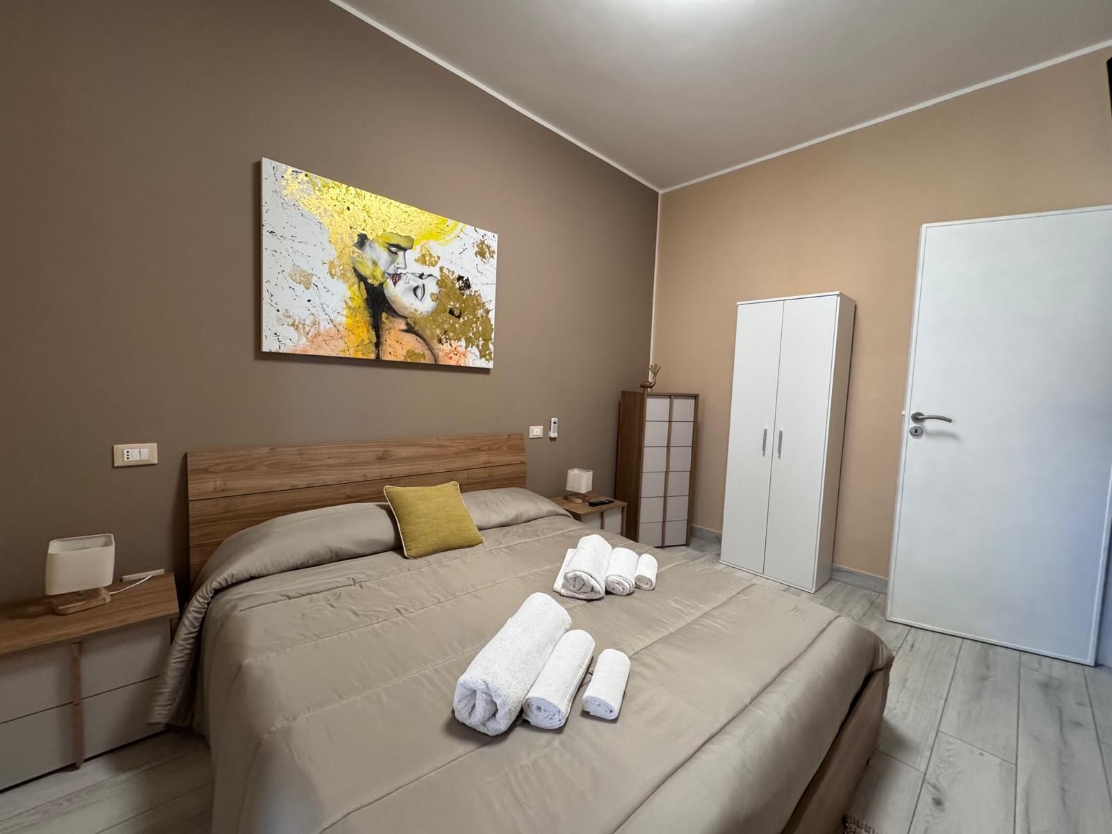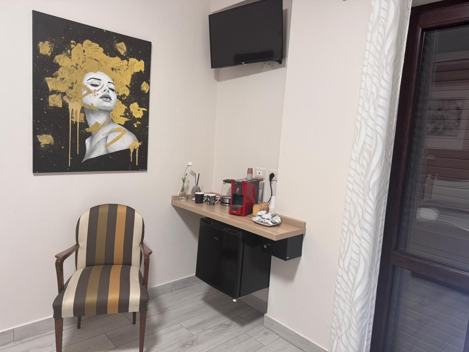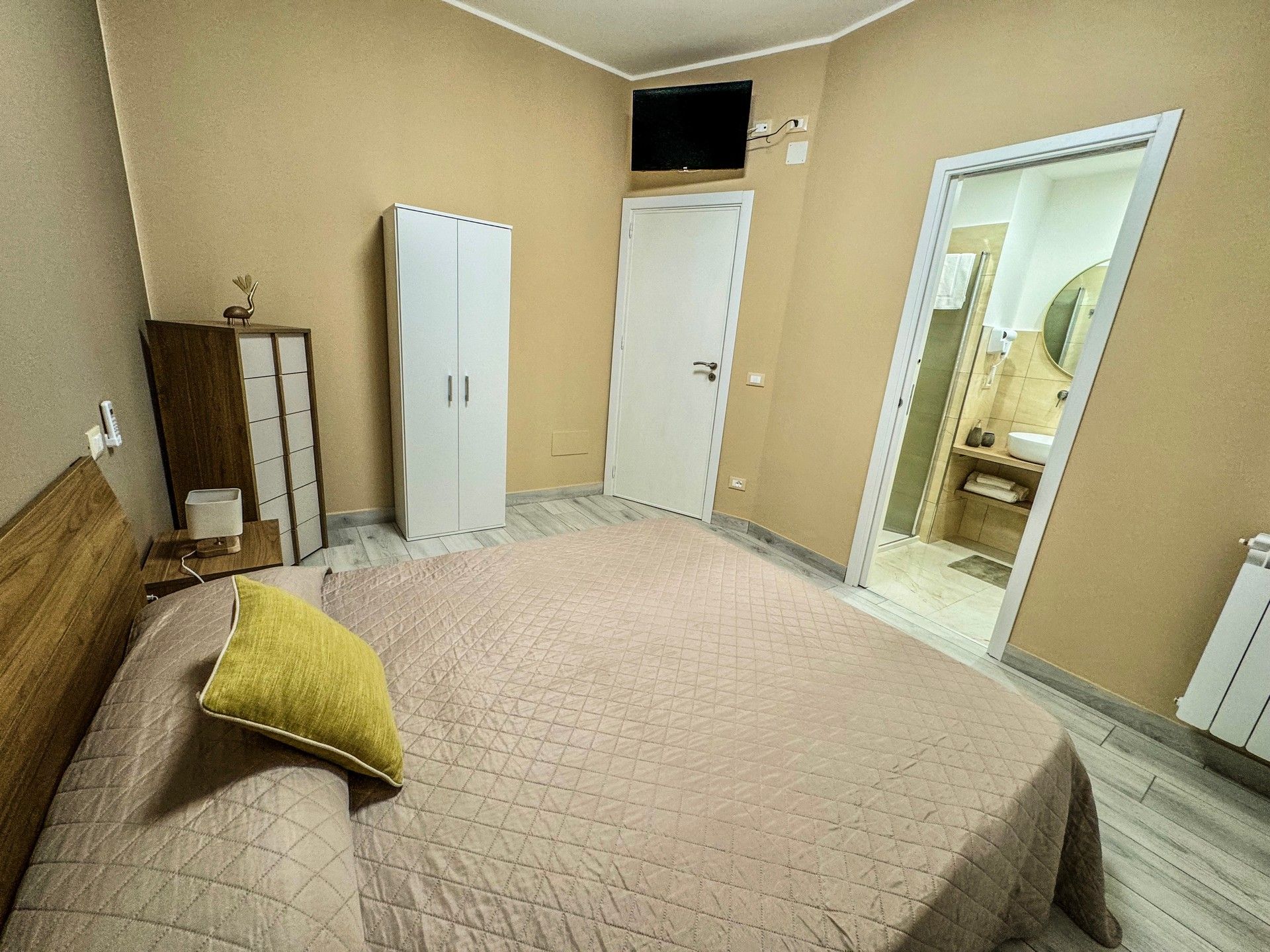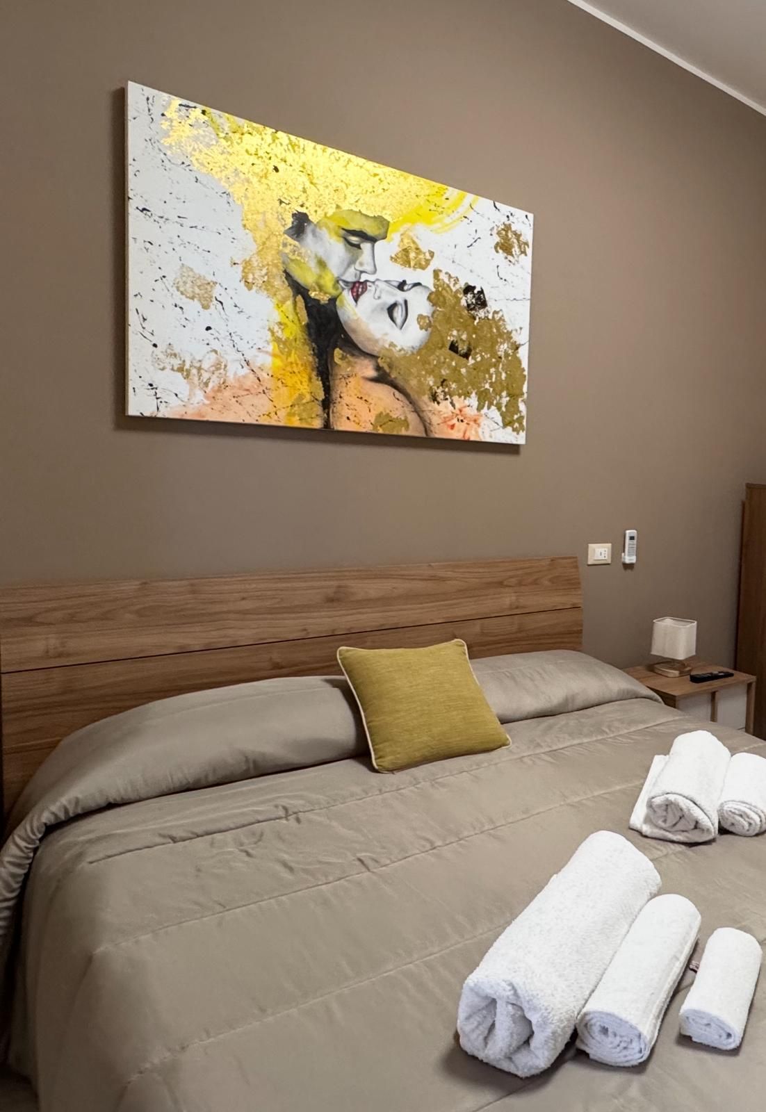 Camere matrimoniale, al primo piano, completamente attrezzate per garantire il massimo comfort. La camera dispone di set di cortesia per soddisfare ogni esigenza, una TV a schermo piatto per rilassarsi dopo una giornata intensa e un frigorifero per tutte le necessità. La camera è climatizzata e arredate con cura e stile. Il bagno è dotato di asciugacapelli, lavatrice e una comoda doccia. La connessione WiFi è gratuita e disponibile in tutta la struttura.