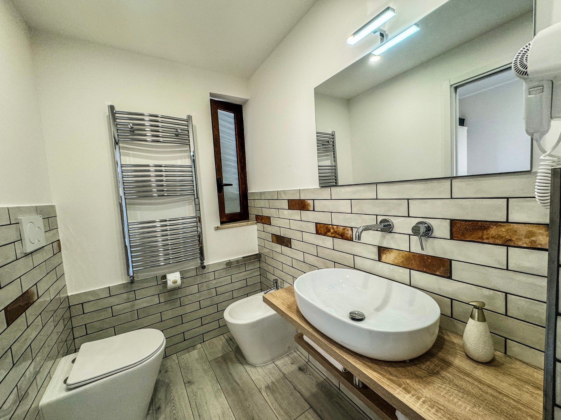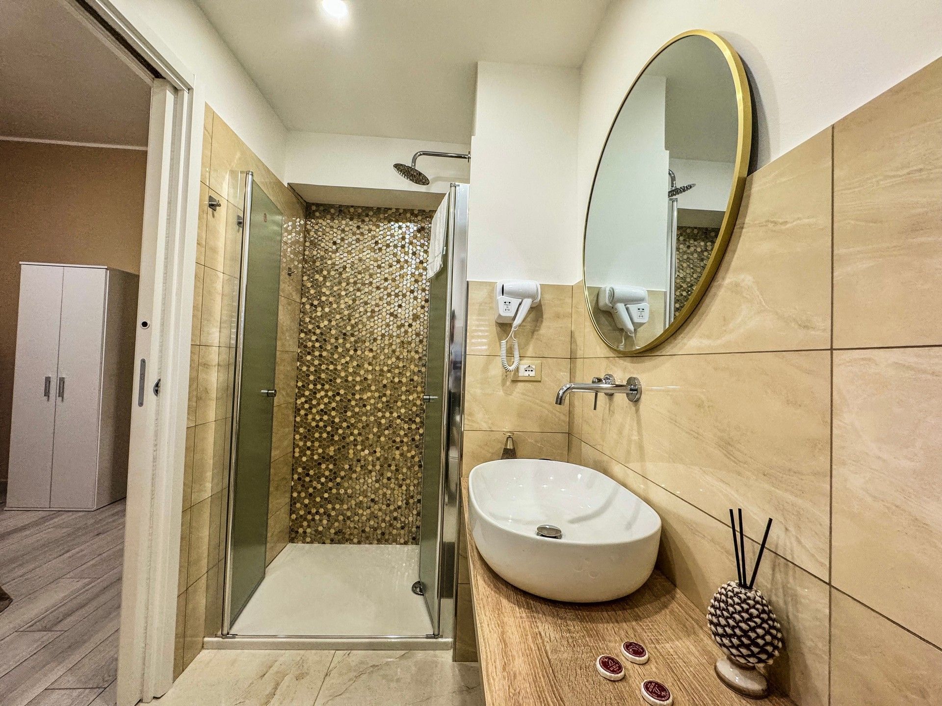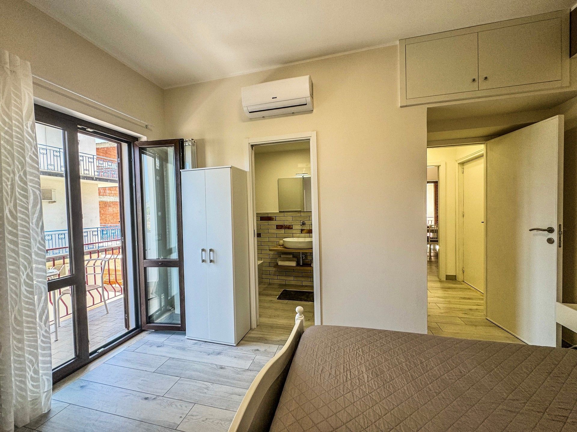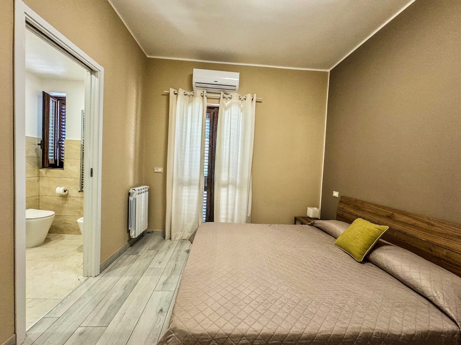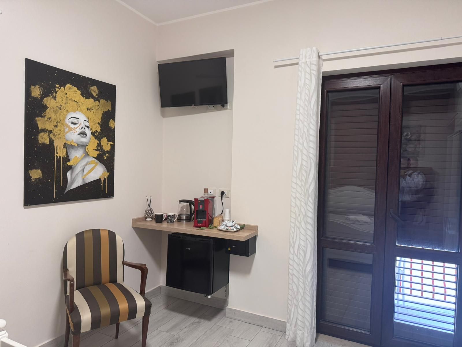 Camere matrimoniale, al primo piano, completamente attrezzate per garantire il massimo comfort. La camera dispone di set di cortesia per soddisfare ogni esigenza, una TV a schermo piatto per rilassarsi dopo una giornata intensa e un frigorifero per tutte le necessità. La camera è climatizzata e arredate con cura e stile. Il bagno è dotato di asciugacapelli, lavatrice e una comoda doccia. La connessione WiFi è gratuita e disponibile in tutta la struttura.
